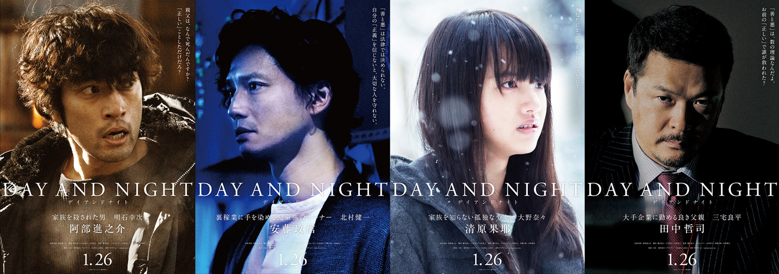『デイアンドナイト』全4種類のキャラクターポスターが完成。