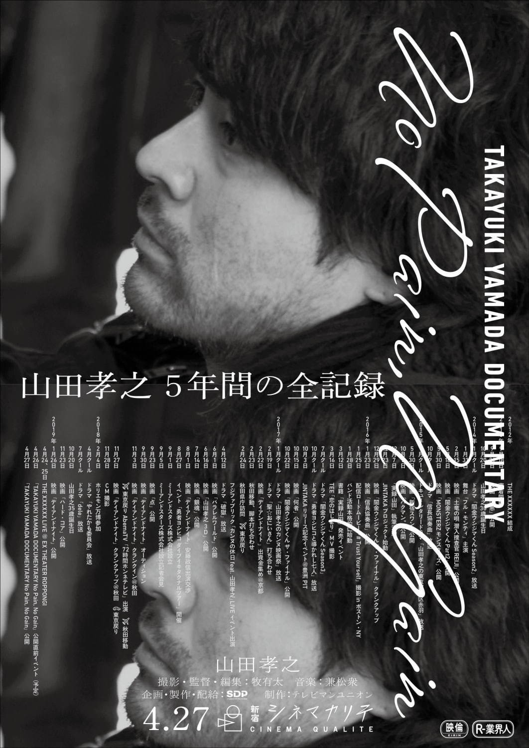山田孝之プロデューサーのドキュメンタリー映画『TAKAYUKI YAMADA DOCUMENTARY「No Pain, No Gain」』の日替わり同時上映も行います。